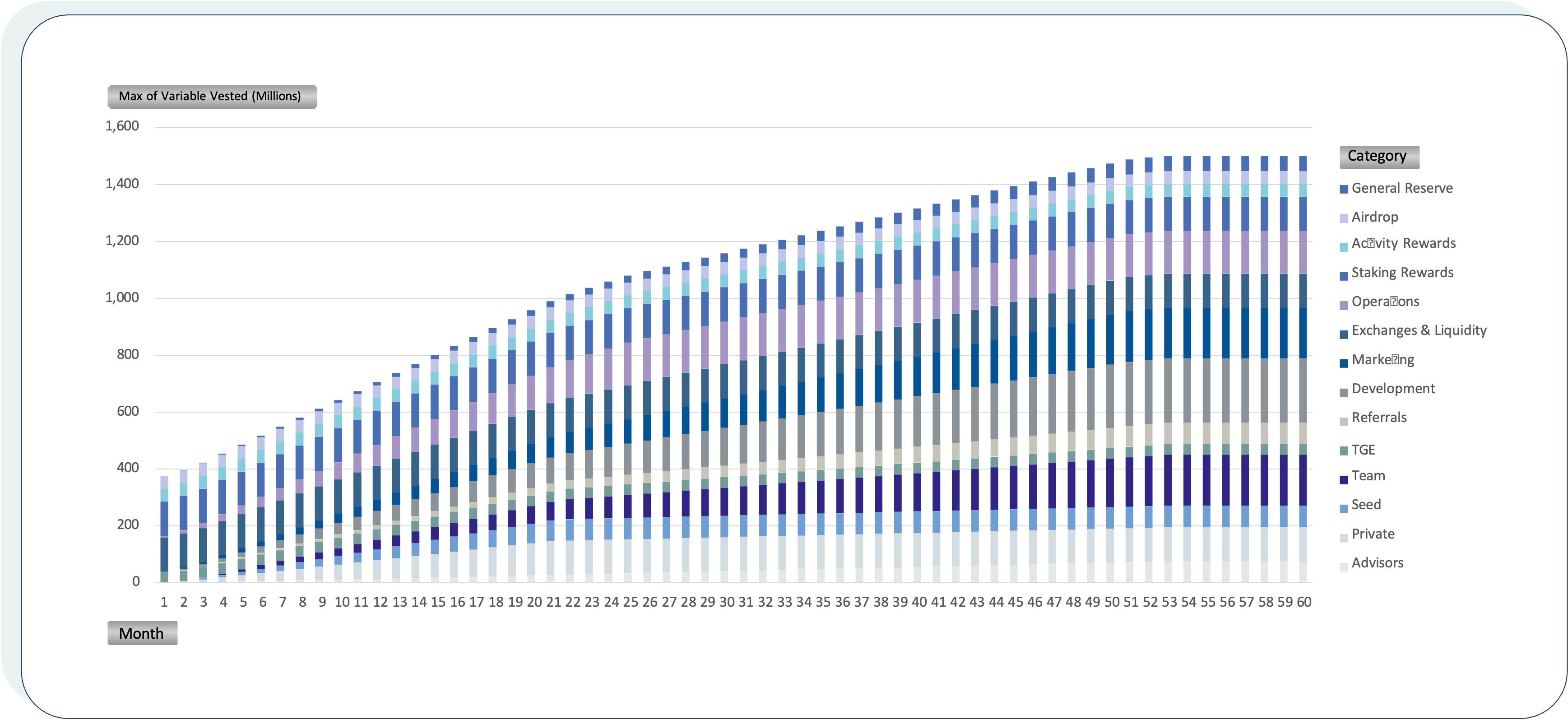 * Team Tokens und Berater Tokens haben längere Vesting-Perioden von 50 bzw. 60 Monaten, was das langfristige Engagement für das Projekt unterstreicht.